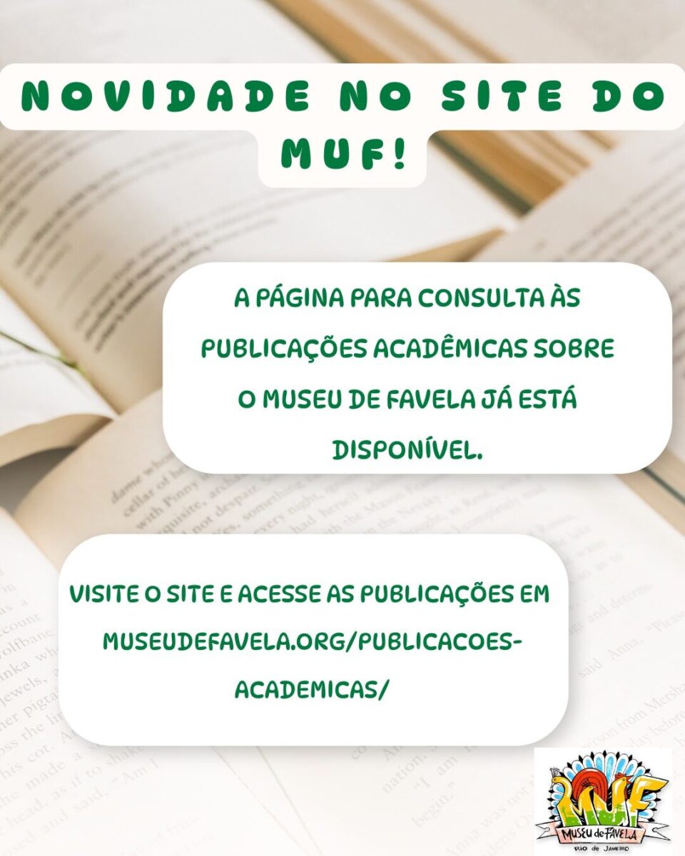 Ao longo desses 17 anos o MUF tem sido objeto de muitas pesquisas em diversas áreas, tanto no Brasil como no exterior. Disponibilizamos hoje, aqui https://museudefavela.org/producoes-academicas/ , uma página para acesso de publicações acadêmicas – livros, artigos científicos, teses e dissertações — sobre o Museu de Favela e também sobre periferias e Museologia Social.
